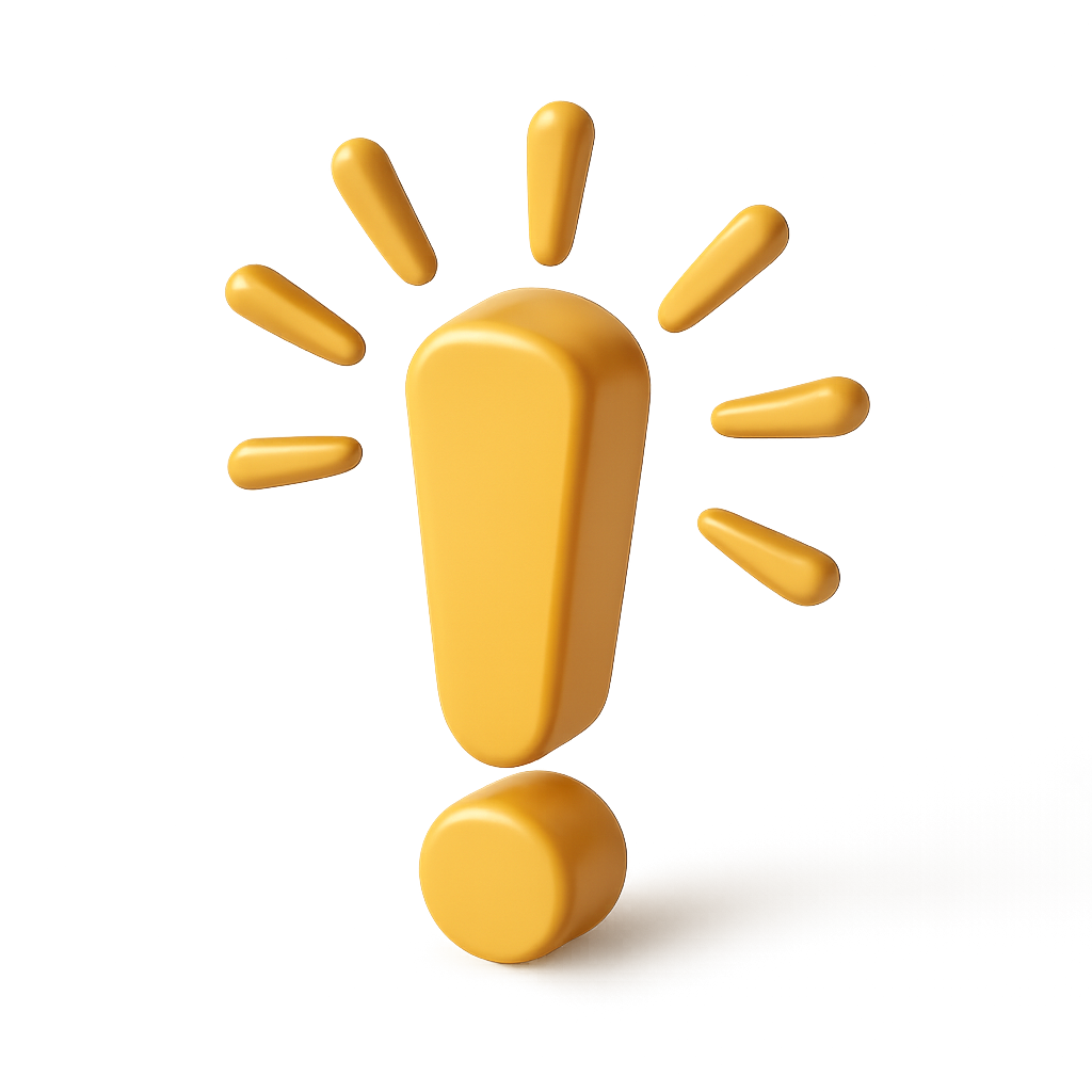 /Collection: /by davooda/Type: PNG/A vibrant 3D exclamation mark in yellow, radiating rays, set against a soft gradient background. The icon showcases a modern, volumetric design with an isometric perspective.