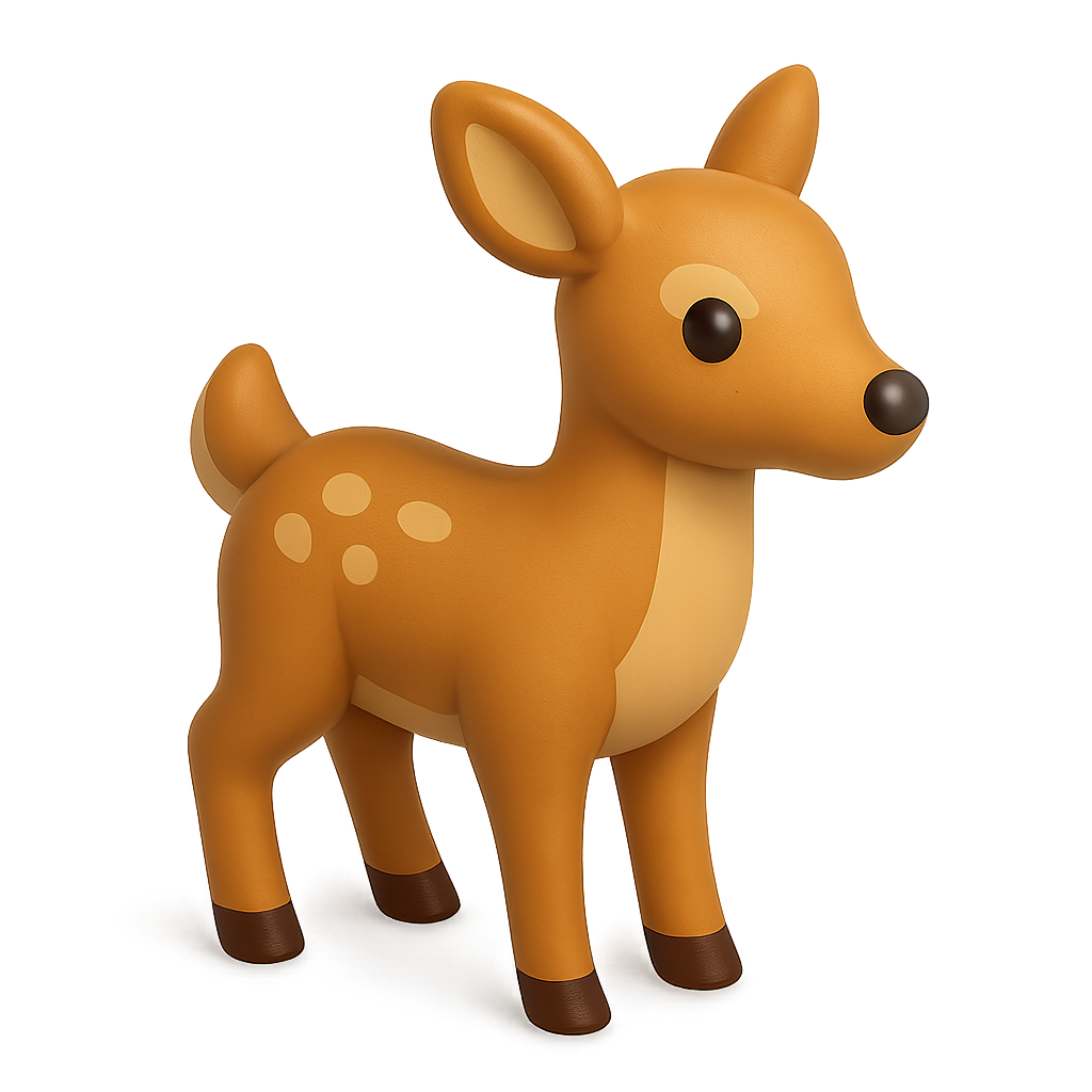 Cute 3D Doe Icon with Isometric Design