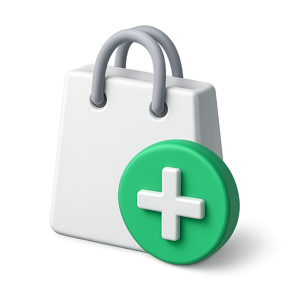 3D Shopping Bag Icon with Plus Sign for Purchase