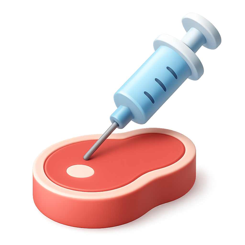 /Collection: /by davooda/Type: PNG/A visually striking 3D icon featuring a steak with a syringe inserted. The design showcases a three-quarter view with a transparent background, emphasizing its volumetric and isometric style.