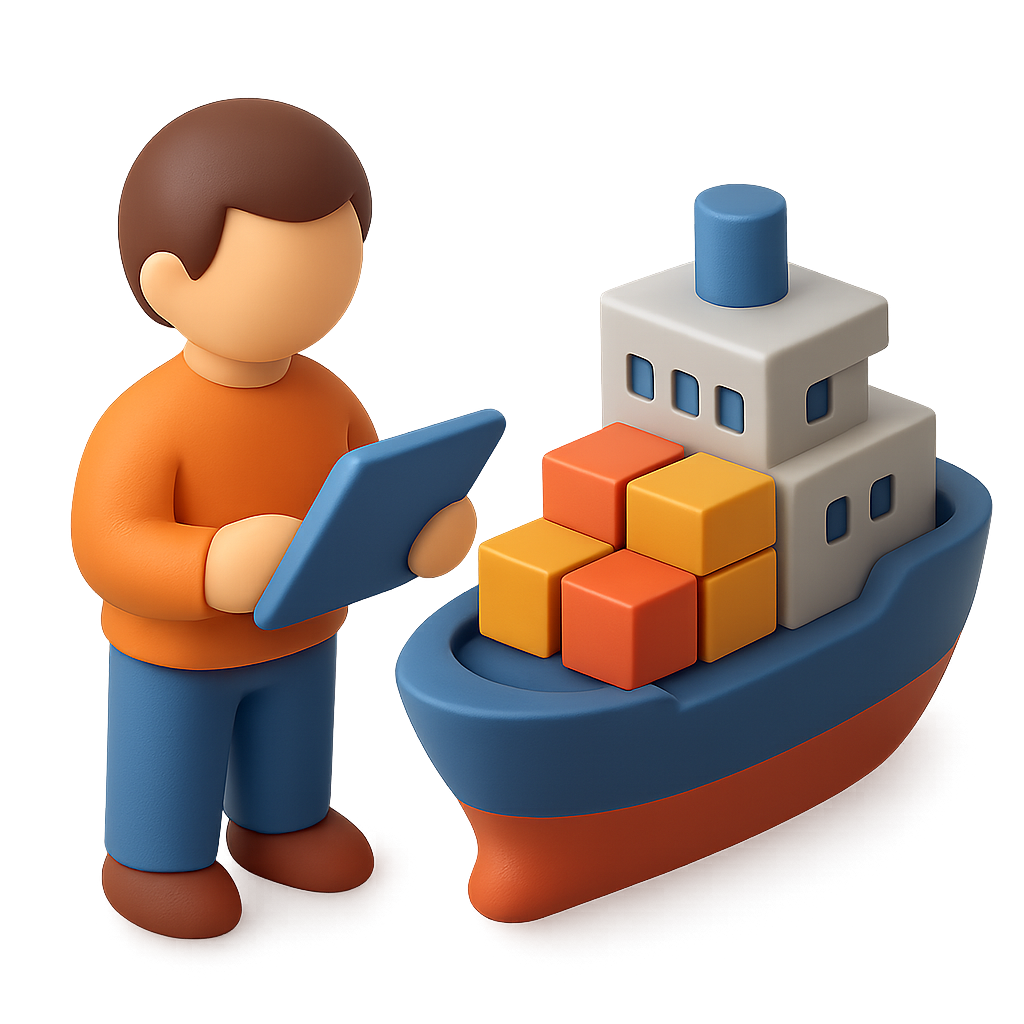 3D Tablet Icon Featuring a Person and Ship Design