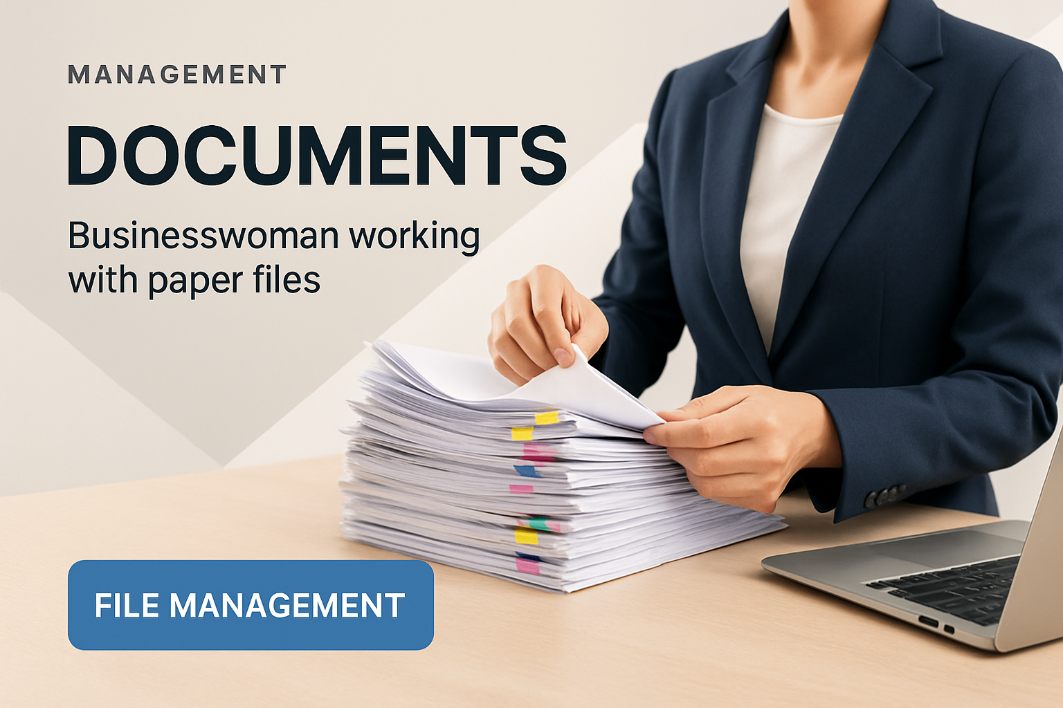 /Collection: /by davooda/Type: PNG/A businesswoman is efficiently handling stacks of paperwork at her office desk, showcasing a modern workspace with a laptop and organized files. The image emphasizes productivity and professionalism.