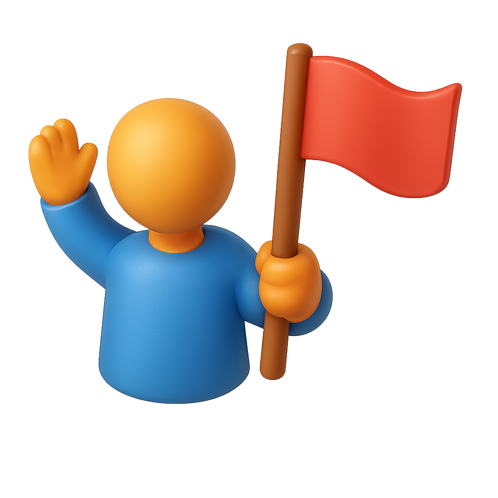/Collection: /by davooda/Type: PNG/This image features a stylized 3D icon of a person waving a red flag, presented in a three-quarter view with a vibrant color palette and a smooth, volumetric design.