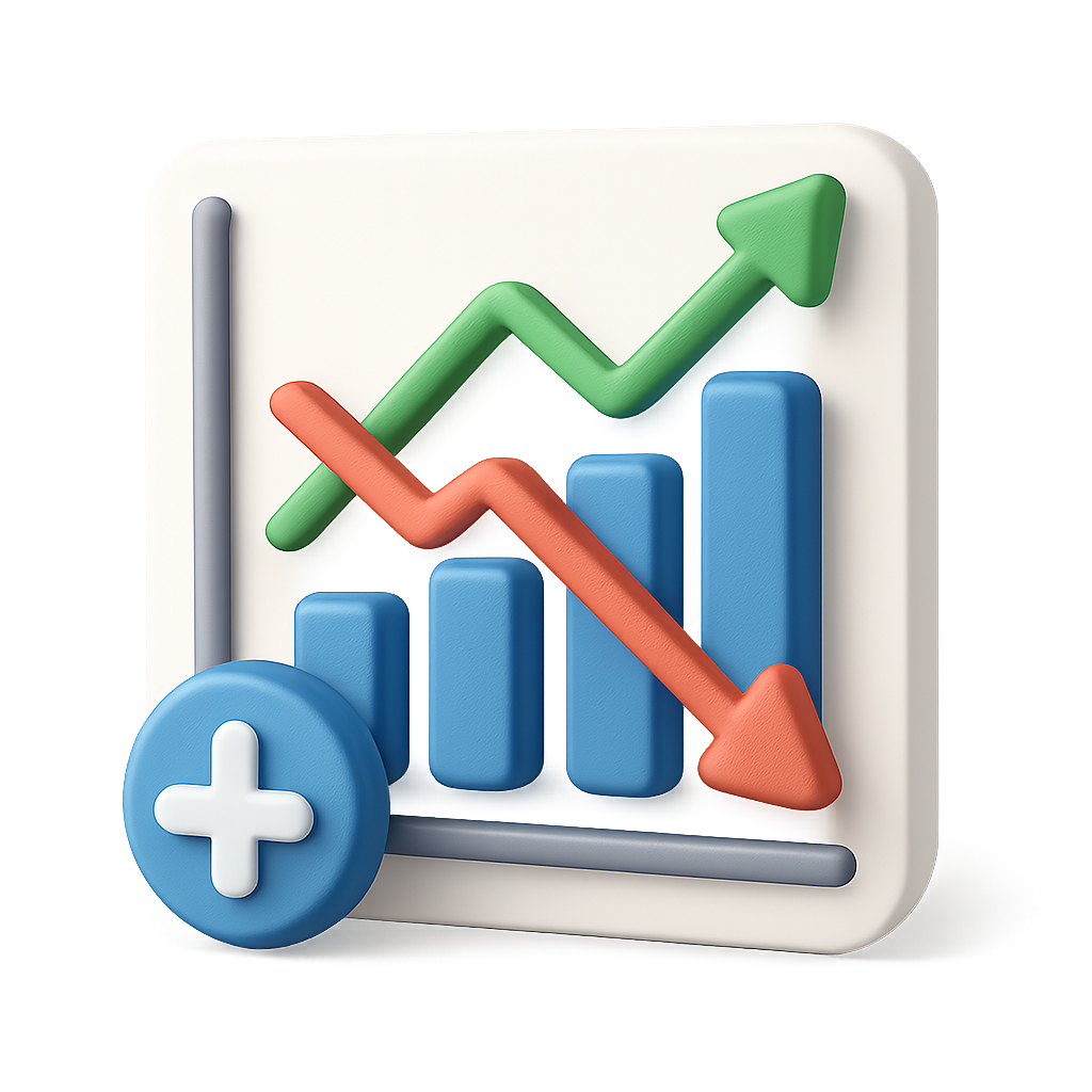 3D Trend Icons with Upward and Downward Graphs