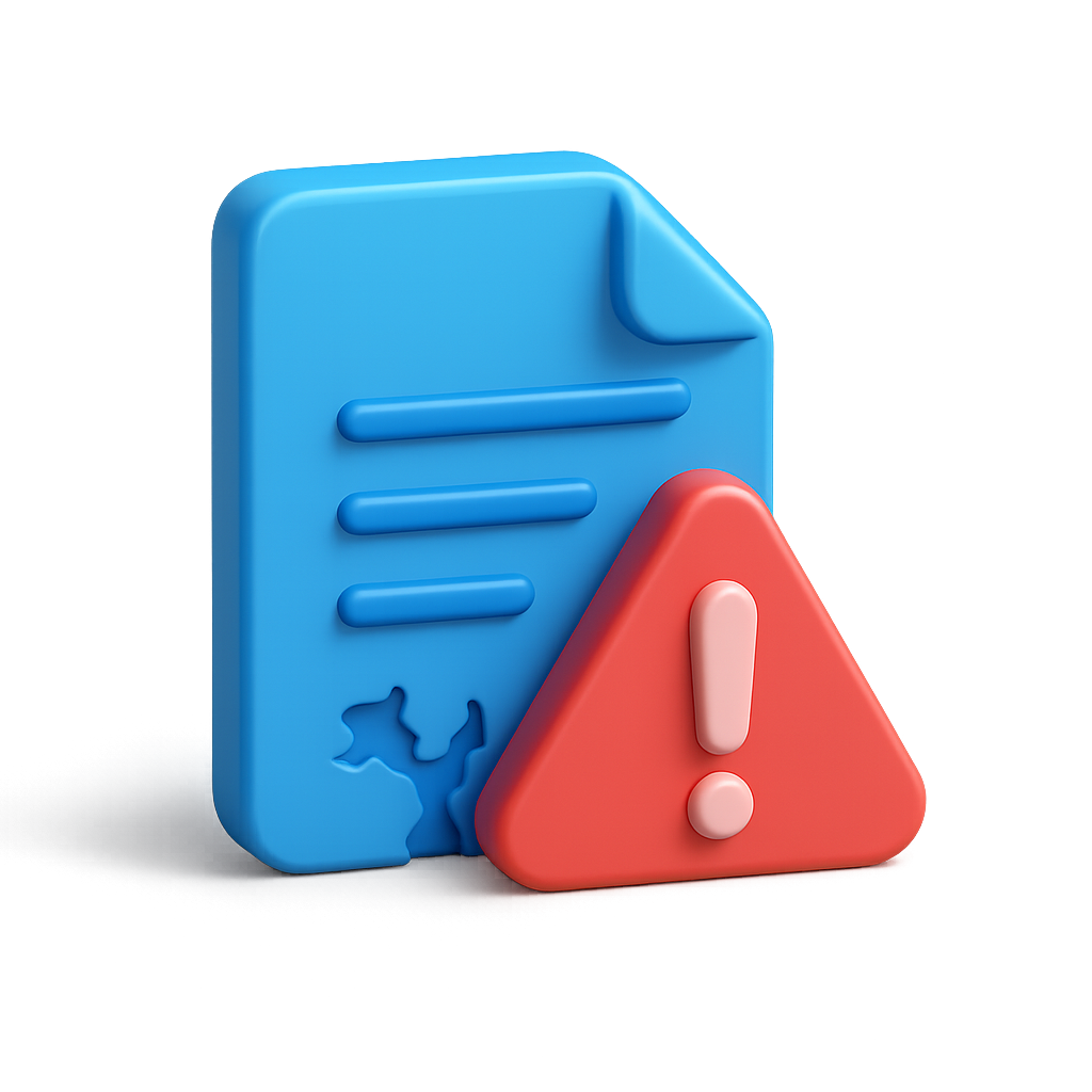 3D Error Icon with Document and Exclamation Mark