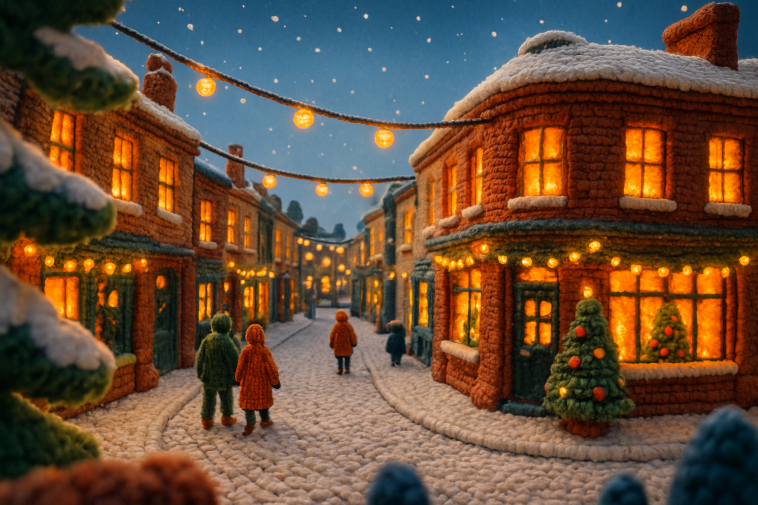 Winter Cambridge in Yarn: A Cozy Holiday Scene