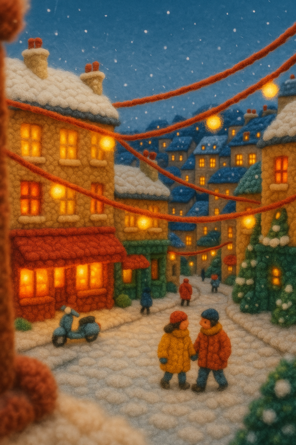 Whimsical Christmas Scene in Bremen with Woolen Textures