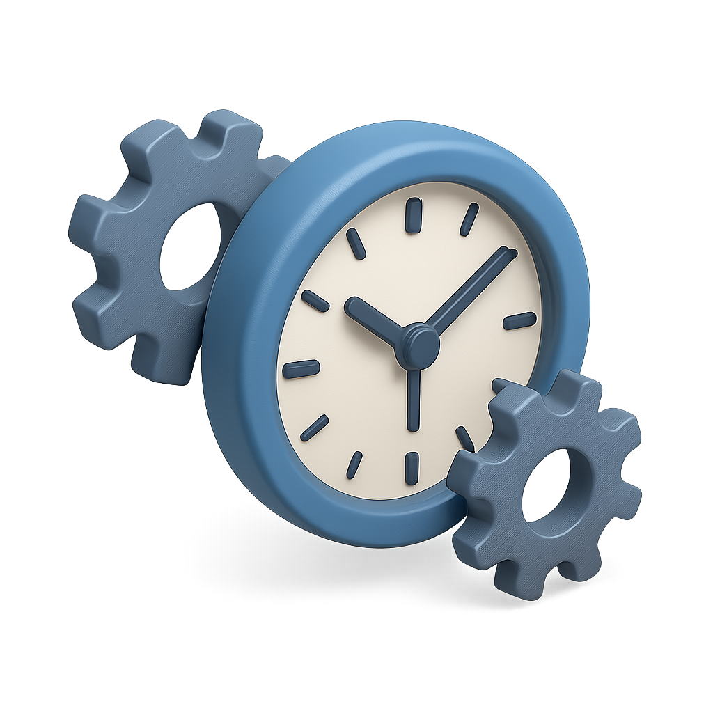 3D Gear and Clock Icon with Document Representation