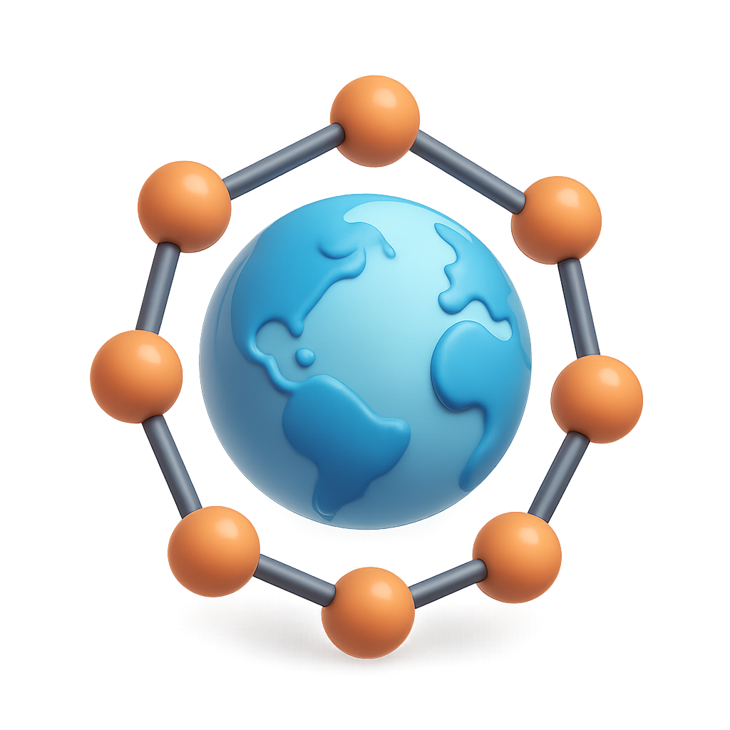 3D Network Icon Representing Global Connectivity