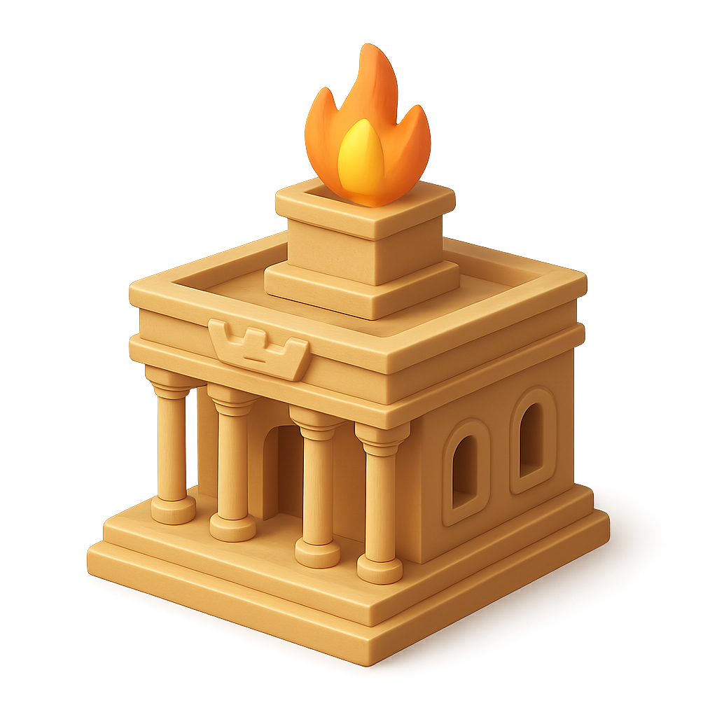 /Collection: /by davooda/Type: PNG/A stylized 3D representation of a Persian fire temple featuring a vibrant flame atop a structured base. The temple showcases classic columns and a unique architectural design.