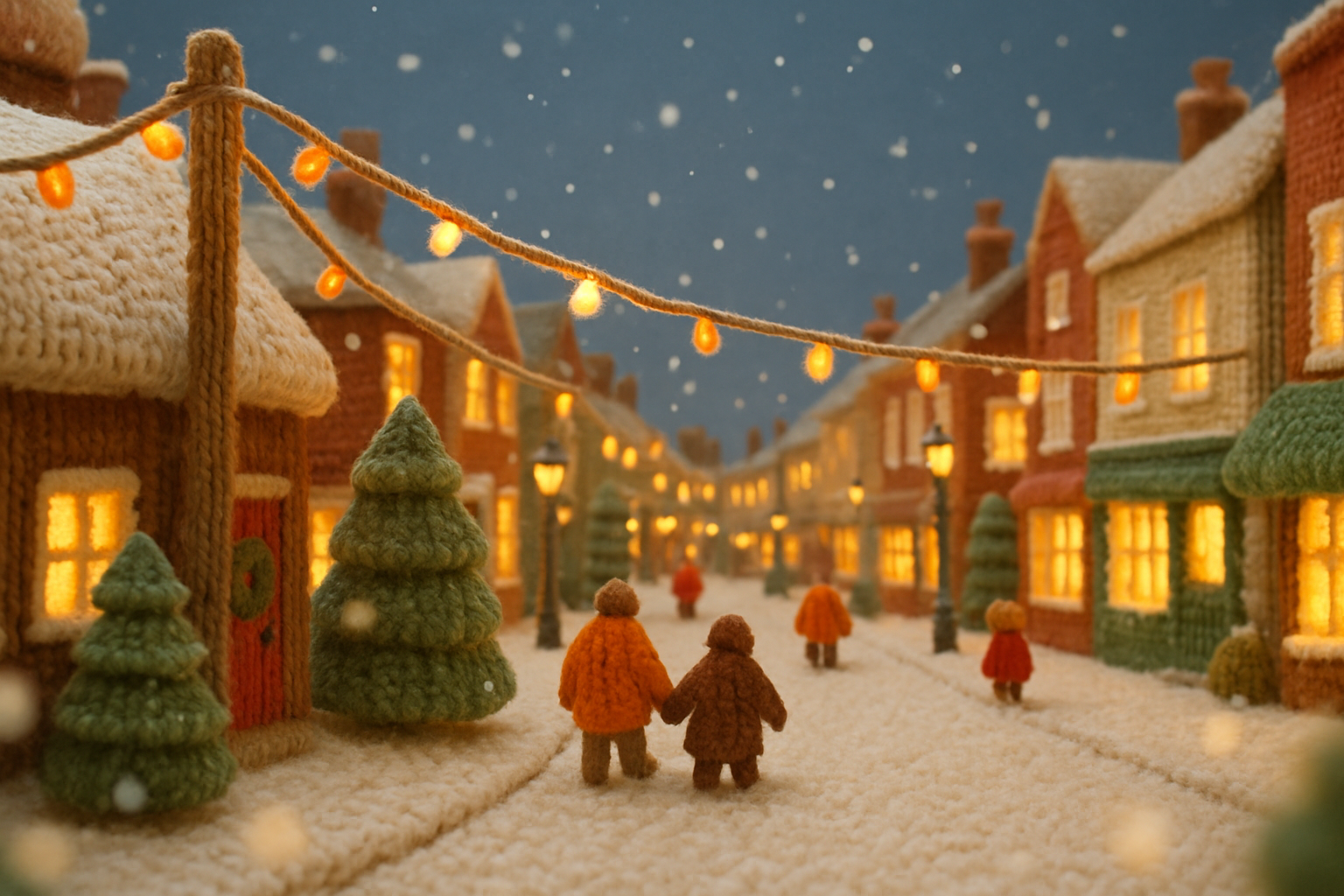 Charming Winter Village Scene with Knitted Aesthetic