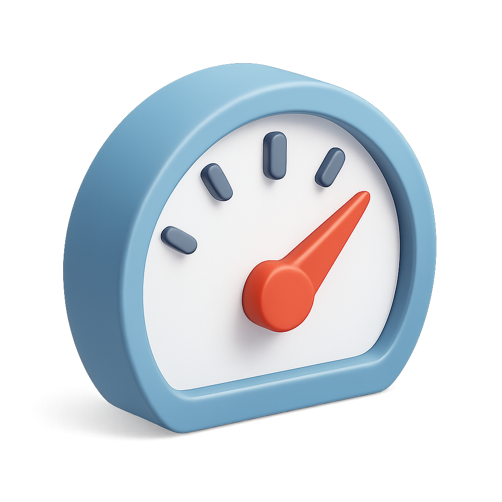 This image features a modern 3D meter icon displaying a gauge with a vibrant red needle. The design is isometric with a soft blue casing, enhancing its volumetric appeal.