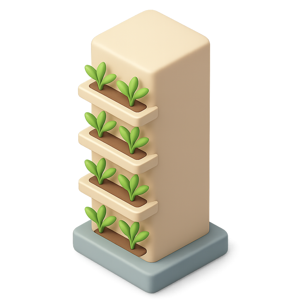 3D Vertical Farming Tower Icon with Plants