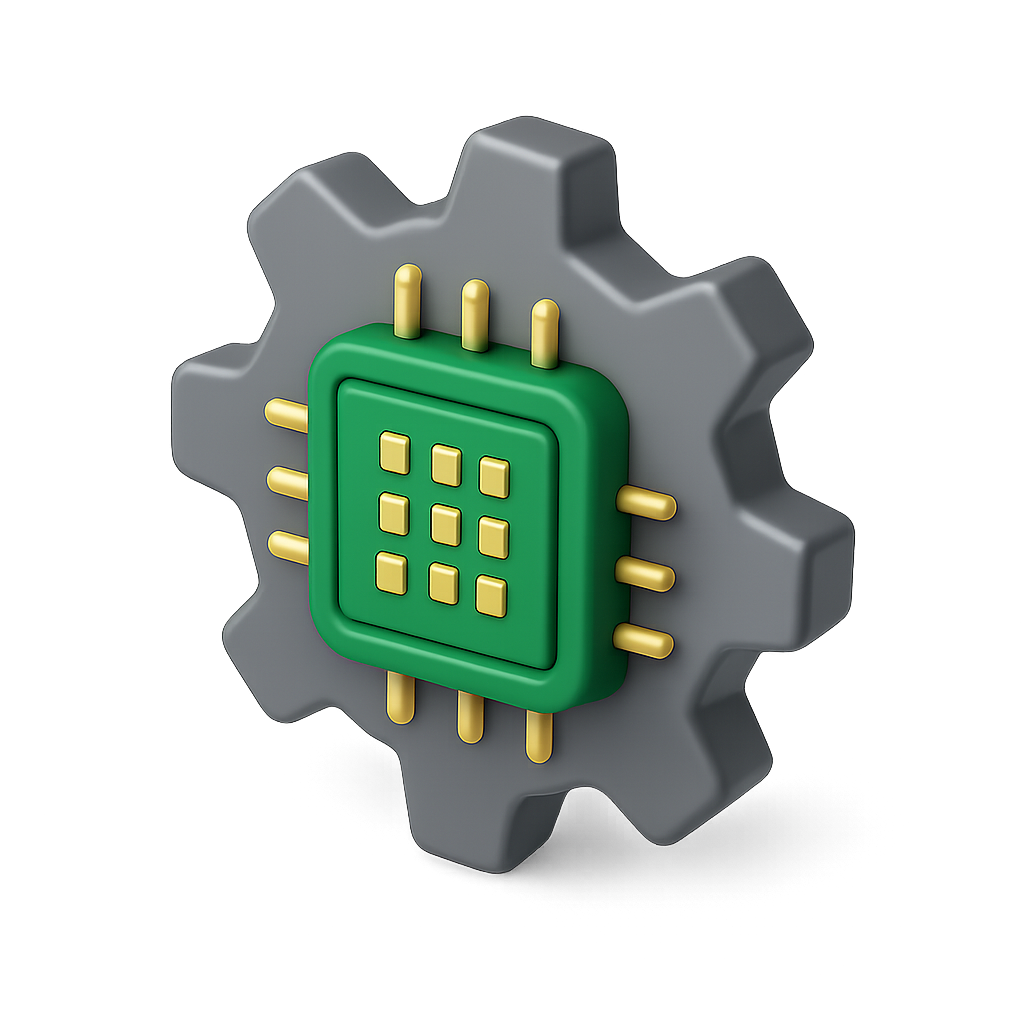 3D Gear and Microchip Icon with Isometric View