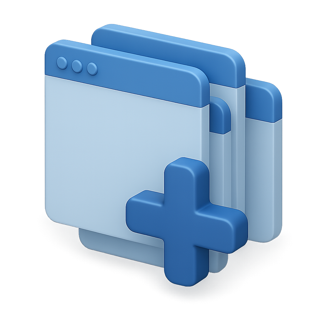 Stylized 3D Overlapping Windows Icon Design