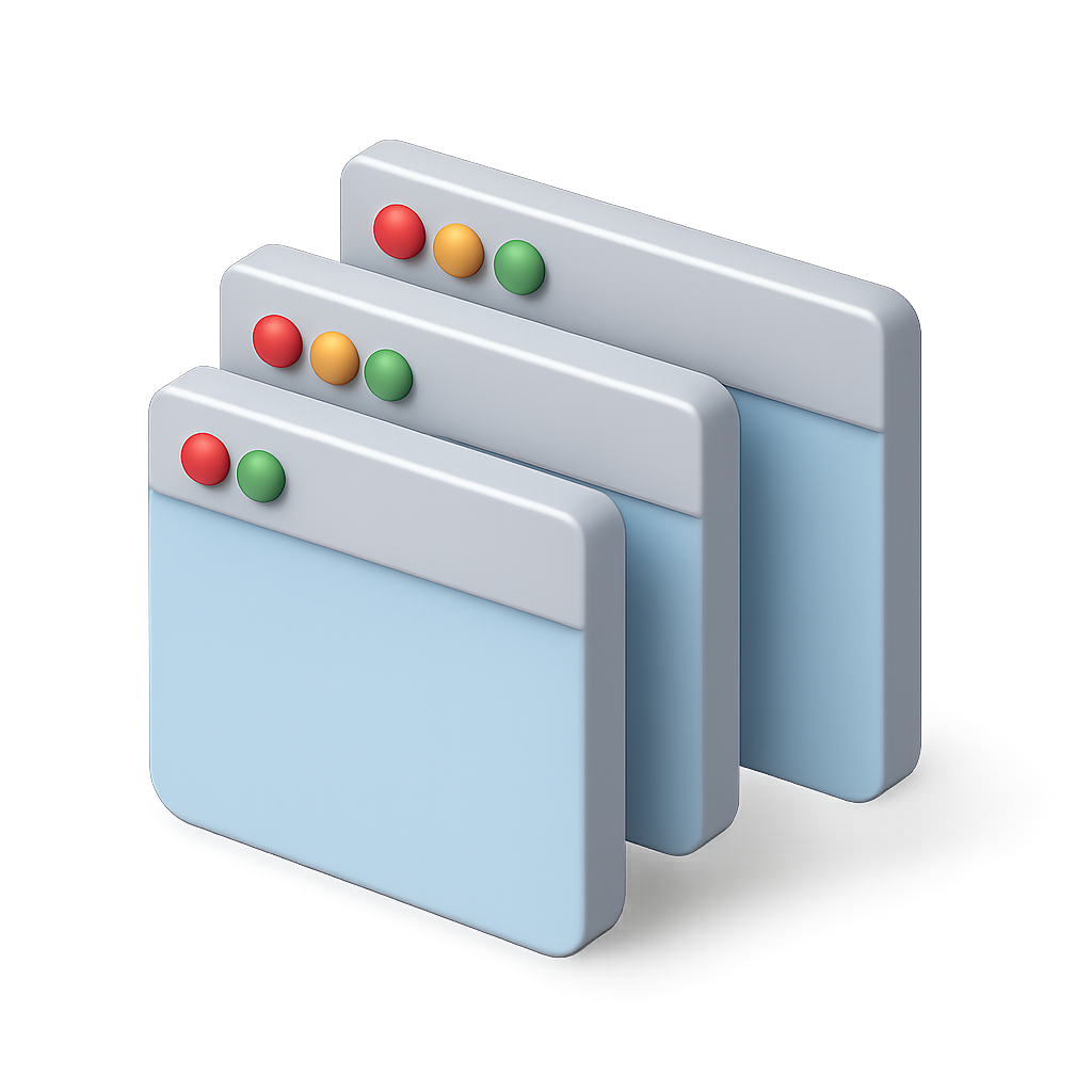 3D Icon of Overlapping Windows with a Volumetric Feel