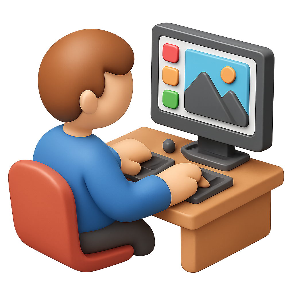 3D Icon of a Photo Retoucher at Computer Desk