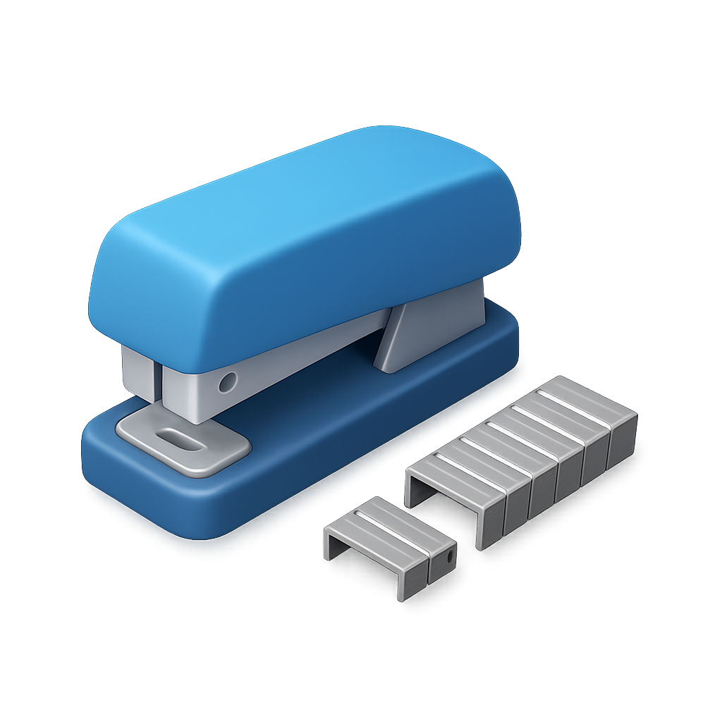 Stylish 3D Stapler Icon with Staples on Transparent Background