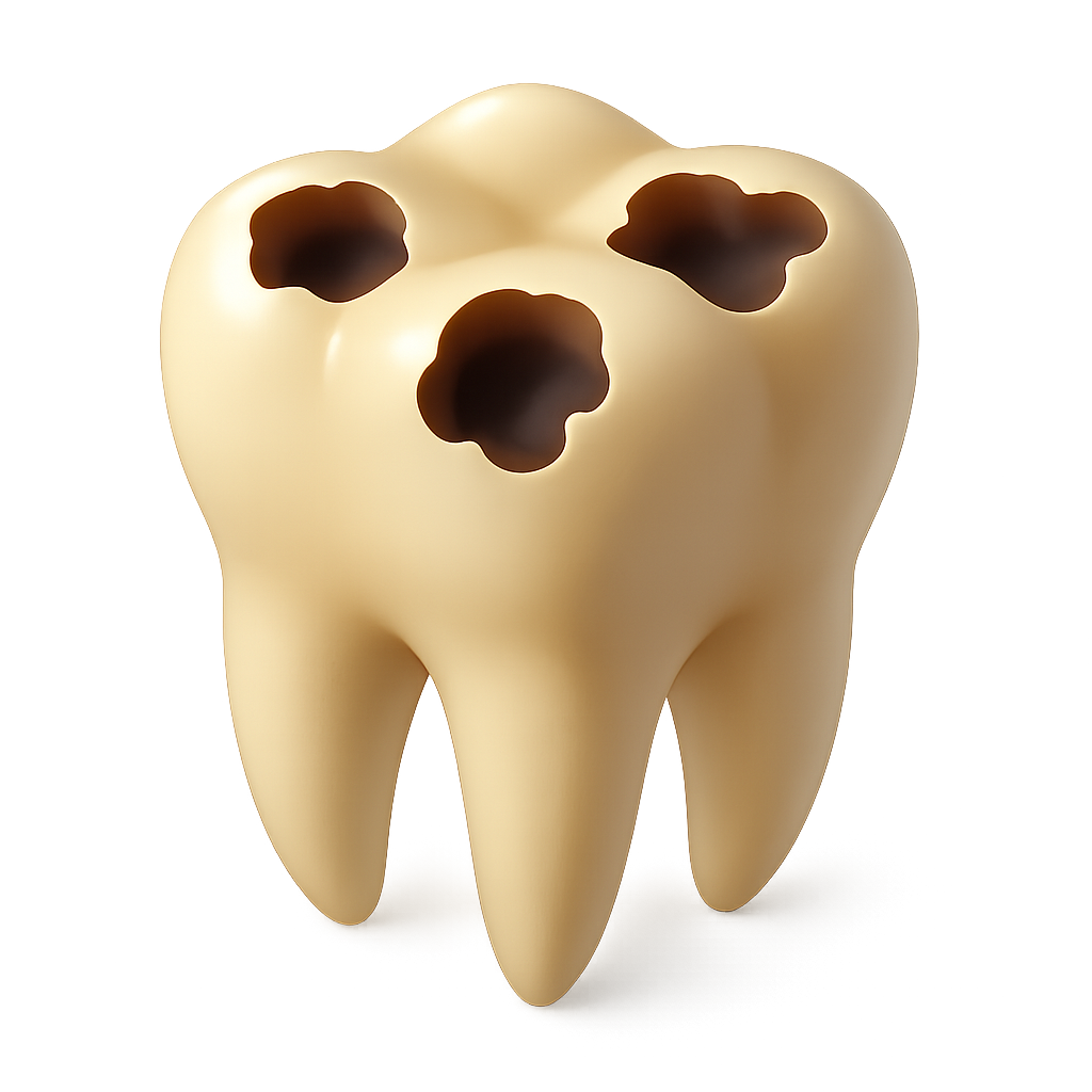 3D Tooth Icon Illustrating Cavities in Isometric View