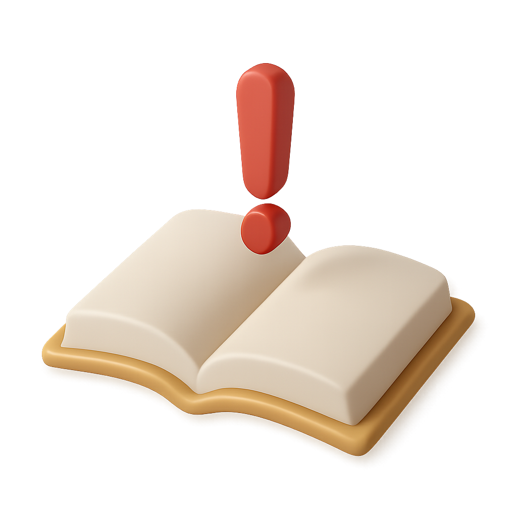 3D Icon of an Open Book with Exclamation Mark