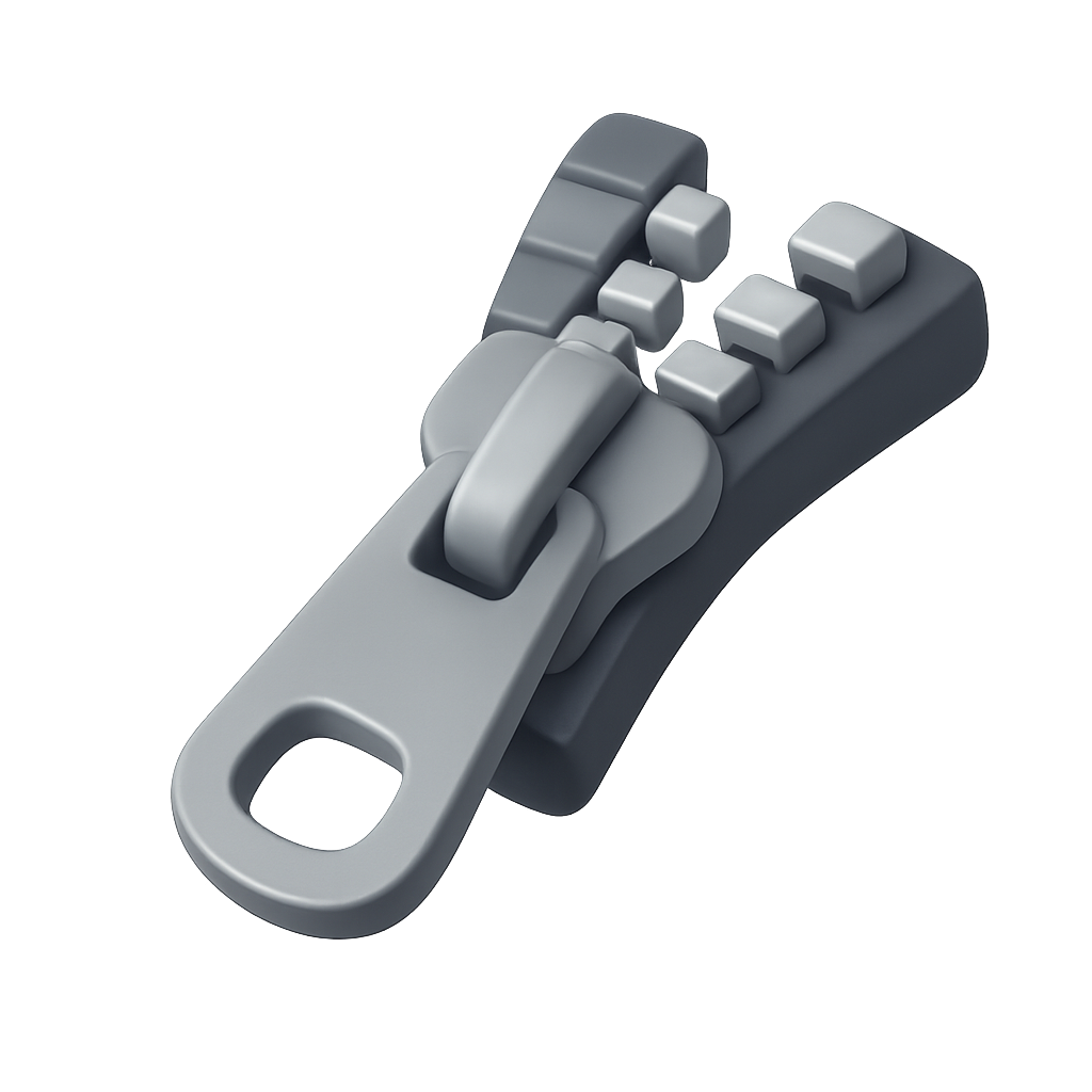 Stylish 3D Zipper Icon with Pull Tab in Isometric View