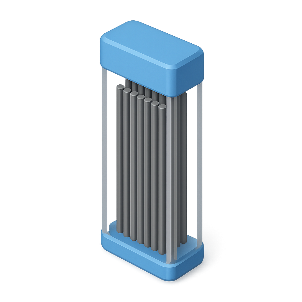 /Collection: /by davooda/Type: PNG/A visually appealing 3D icon of a lead refills pack, featuring a transparent background and a three-quarter isometric view. The pack is blue with a sleek design, showcasing multiple gray leads inside.