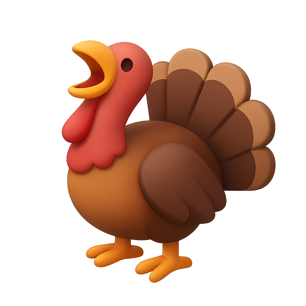 3D Turkey Icon in Vibrant Colors for Thanksgiving