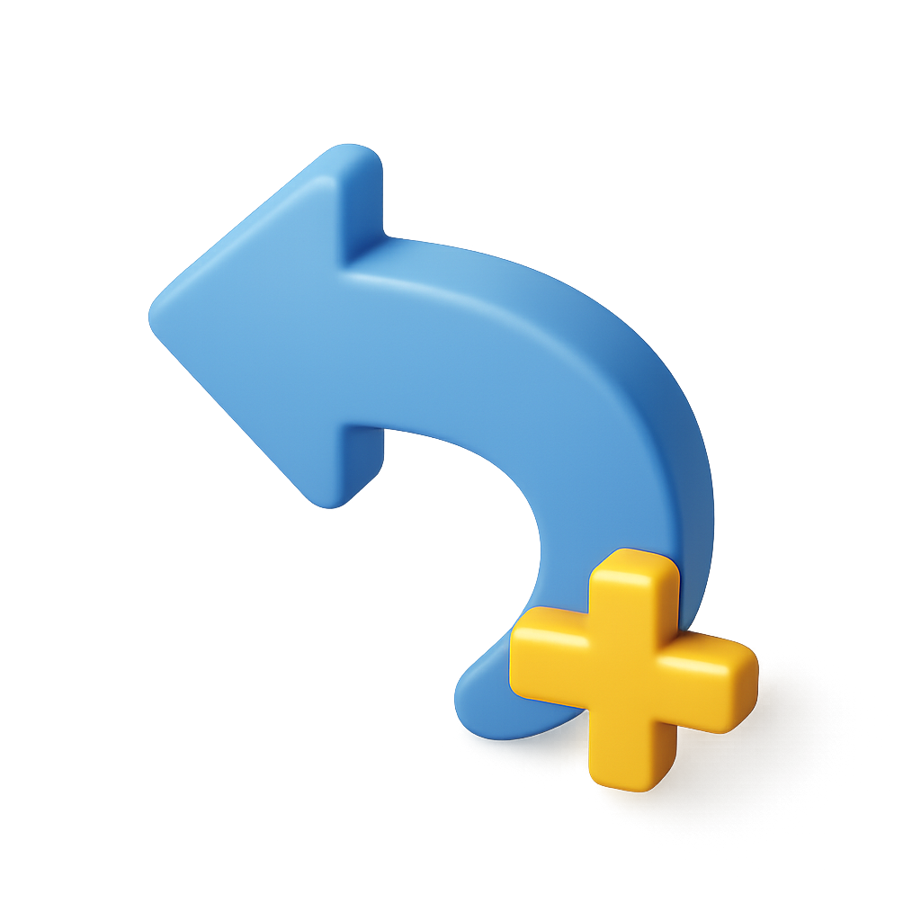 3D Curved Arrow Icon with Plus Sign