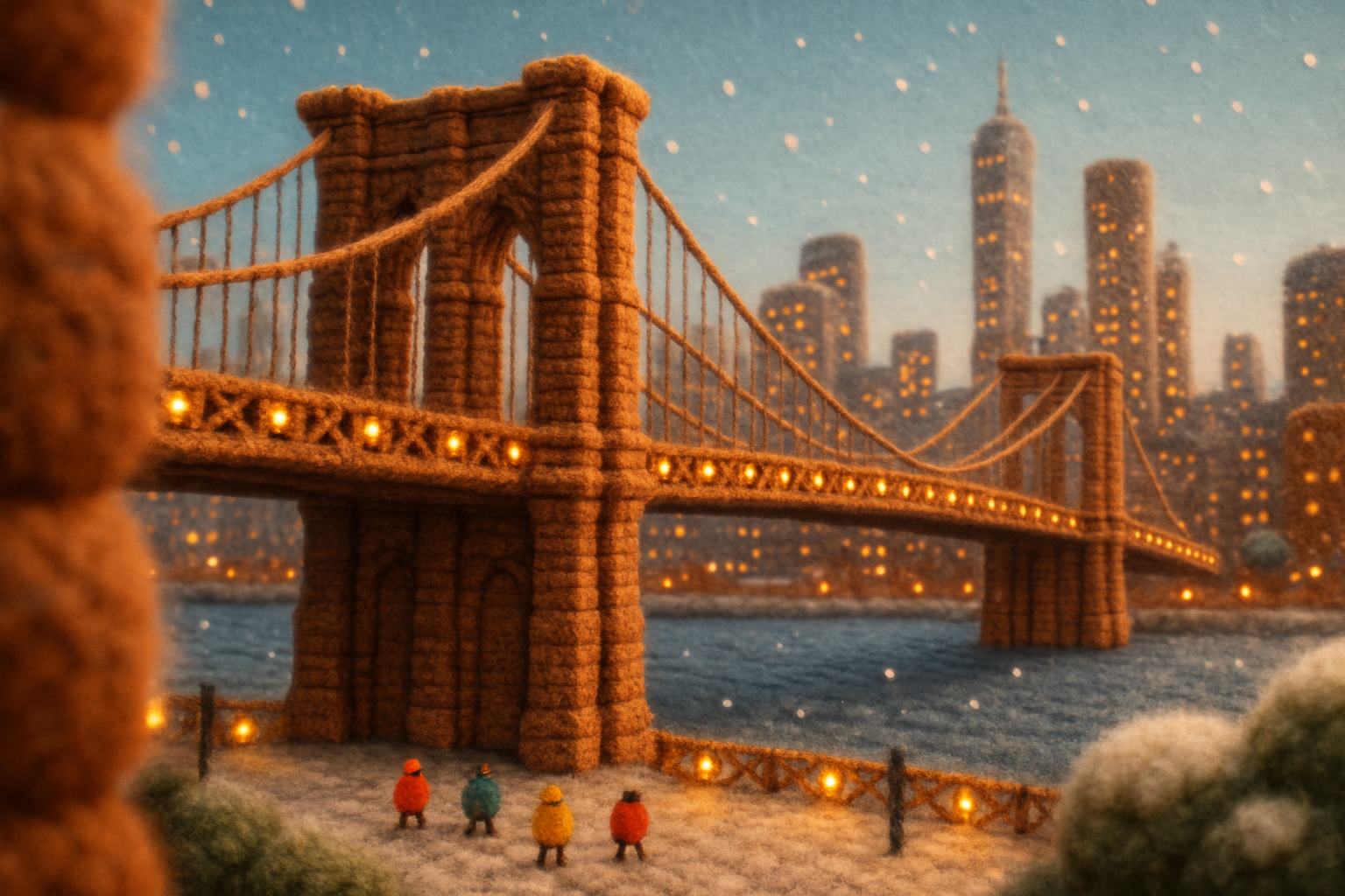 Cozy Knit Brooklyn Bridge Scene in Winter