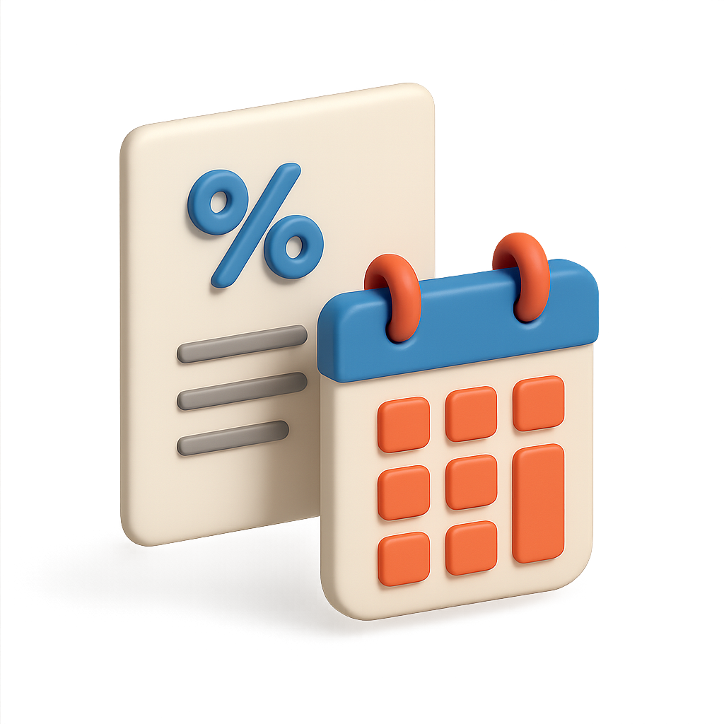 /Collection: /by davooda/Type: PNG/A visually appealing 3D icon featuring a report symbol with a percentage sign and a calendar. The design has a transparent background and presents a three-quarter isometric view.