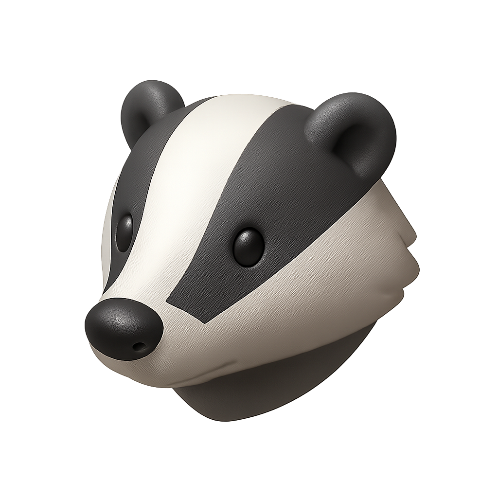 Stylized 3D Badger Icon with Striped Face