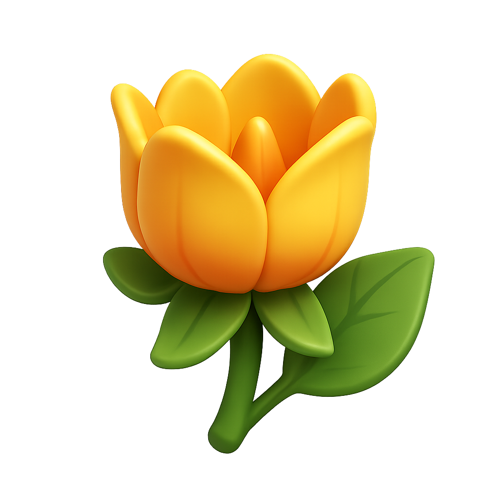 Stylized 3D Tulip Tree Flower Icon with Green Leaves