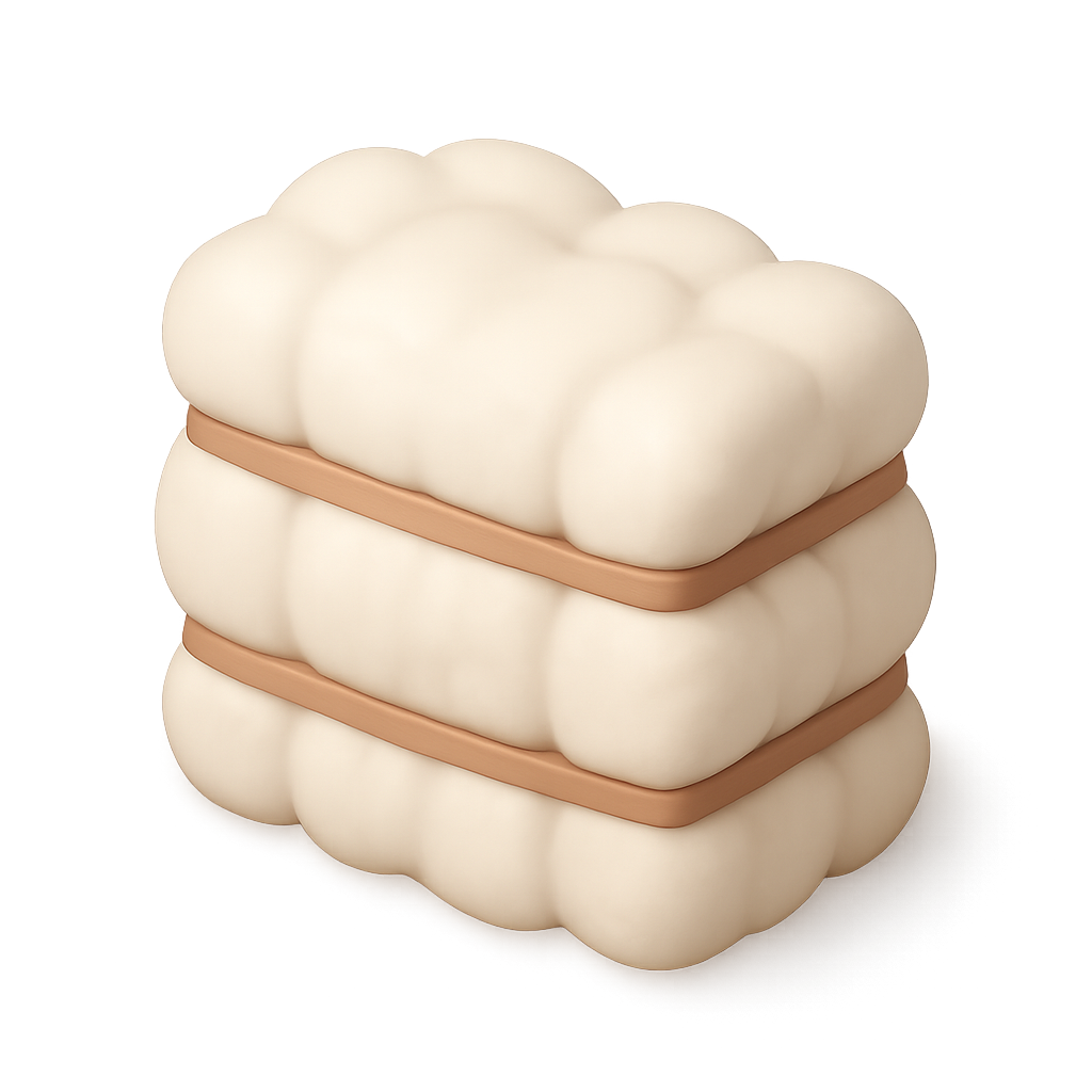 Stylized 3D Cotton Bale Icon with Isometric View