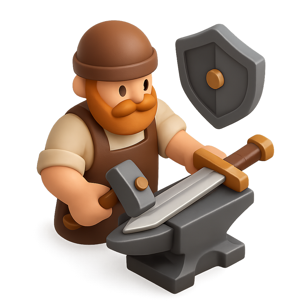 3D Armorer Icon Featuring a Weapon Maker in Isometric View