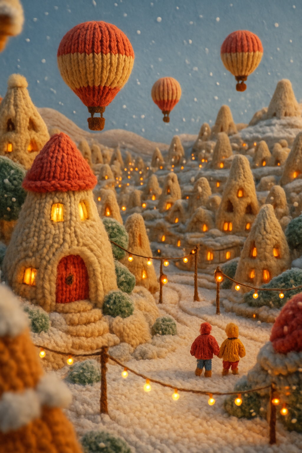 Charming New Year Cappadocia Scene in 3D Yarn Art