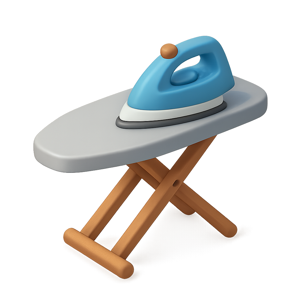 Stylish 3D Ironing Board and Iron Icon with Transparent Background