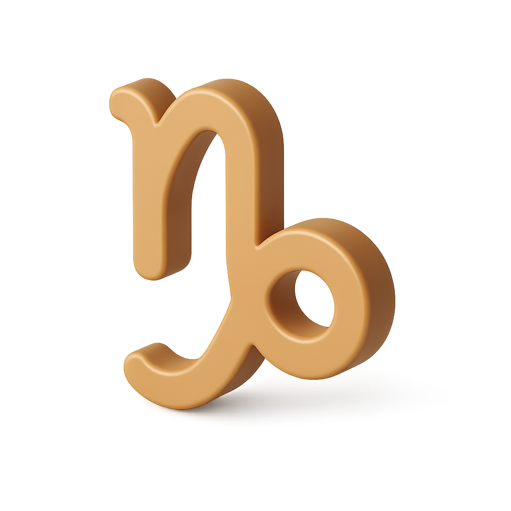A sleek 3D representation of the Capricorn astrological sign, featuring a warm beige color with a glossy finish, set against a subtle gradient background.