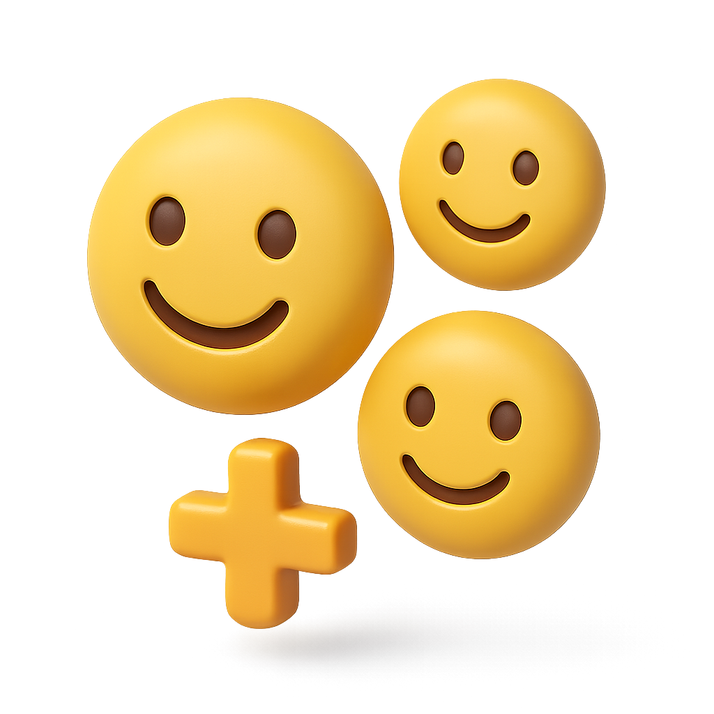 /Collection: /by davooda/Type: PNG/A vibrant 3D icon featuring three smiling faces, designed with a glossy finish and a transparent background. The faces are cheerful and volumetric, creating a playful atmosphere.