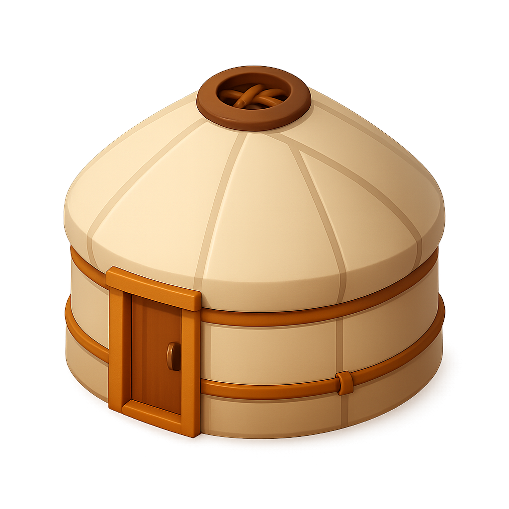 Stylized 3D Yurt Icon with Isometric Design