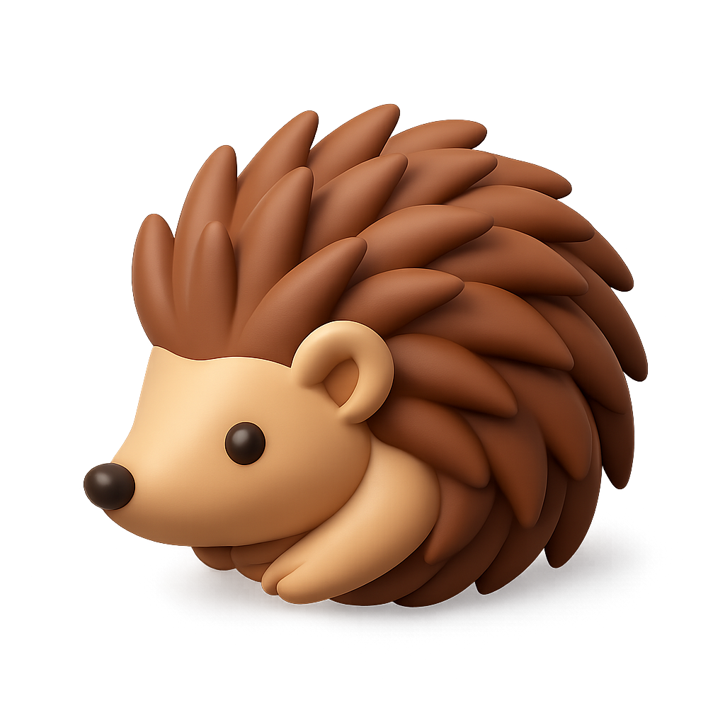 A stylized 3D hedgehog icon featuring curled spines, rendered in a three-quarter view. The design showcases a soft, rounded appearance with a smooth texture and warm color palette.