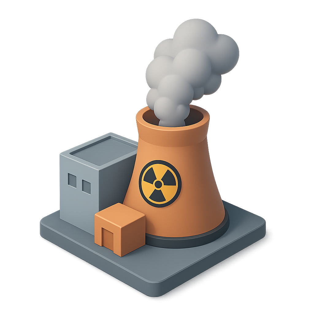 3D Nuclear Plant Icon with Smoke and Isometric View