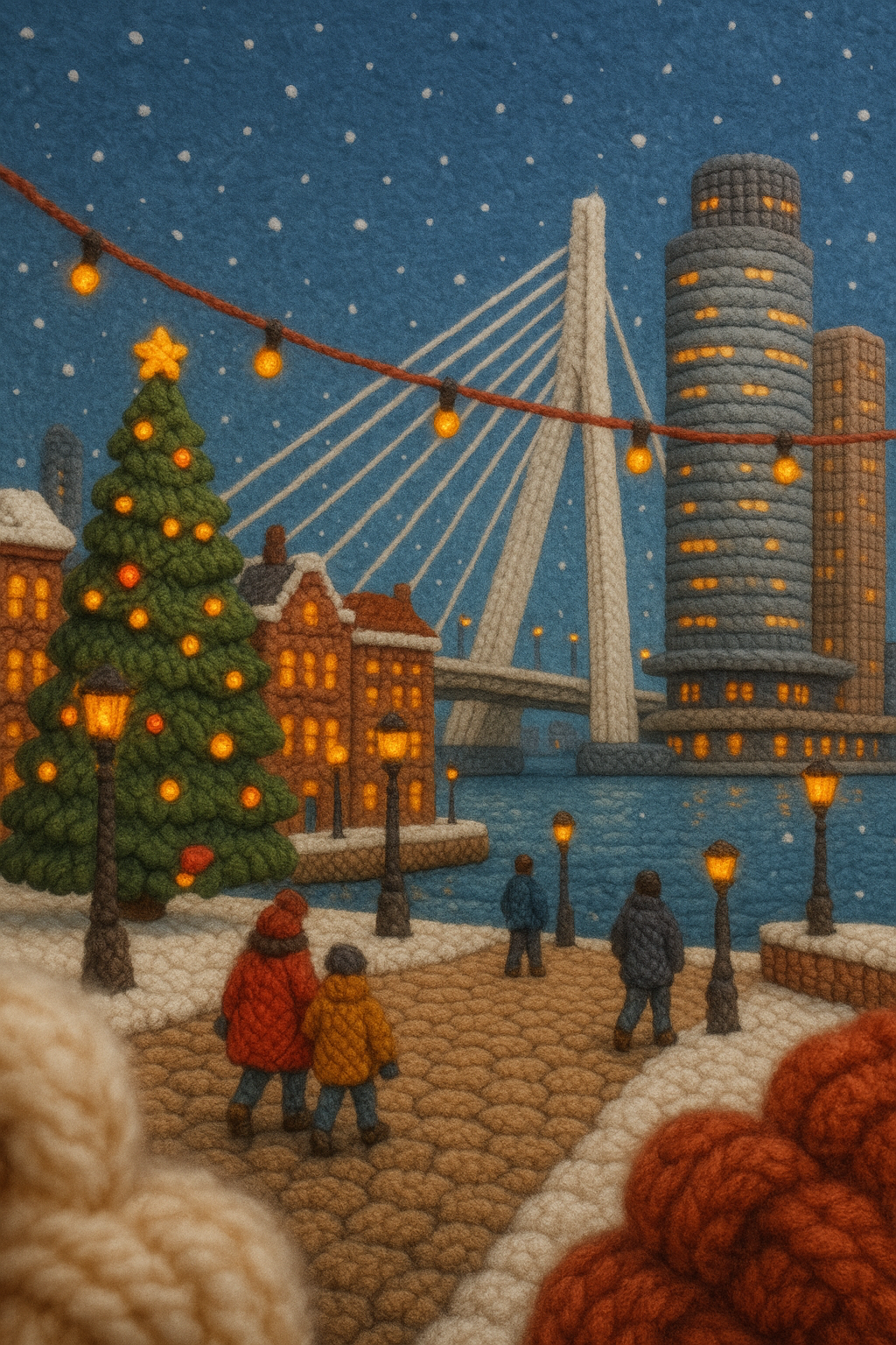 Knitted Rotterdam Waterfront Scene with Holiday Atmosphere