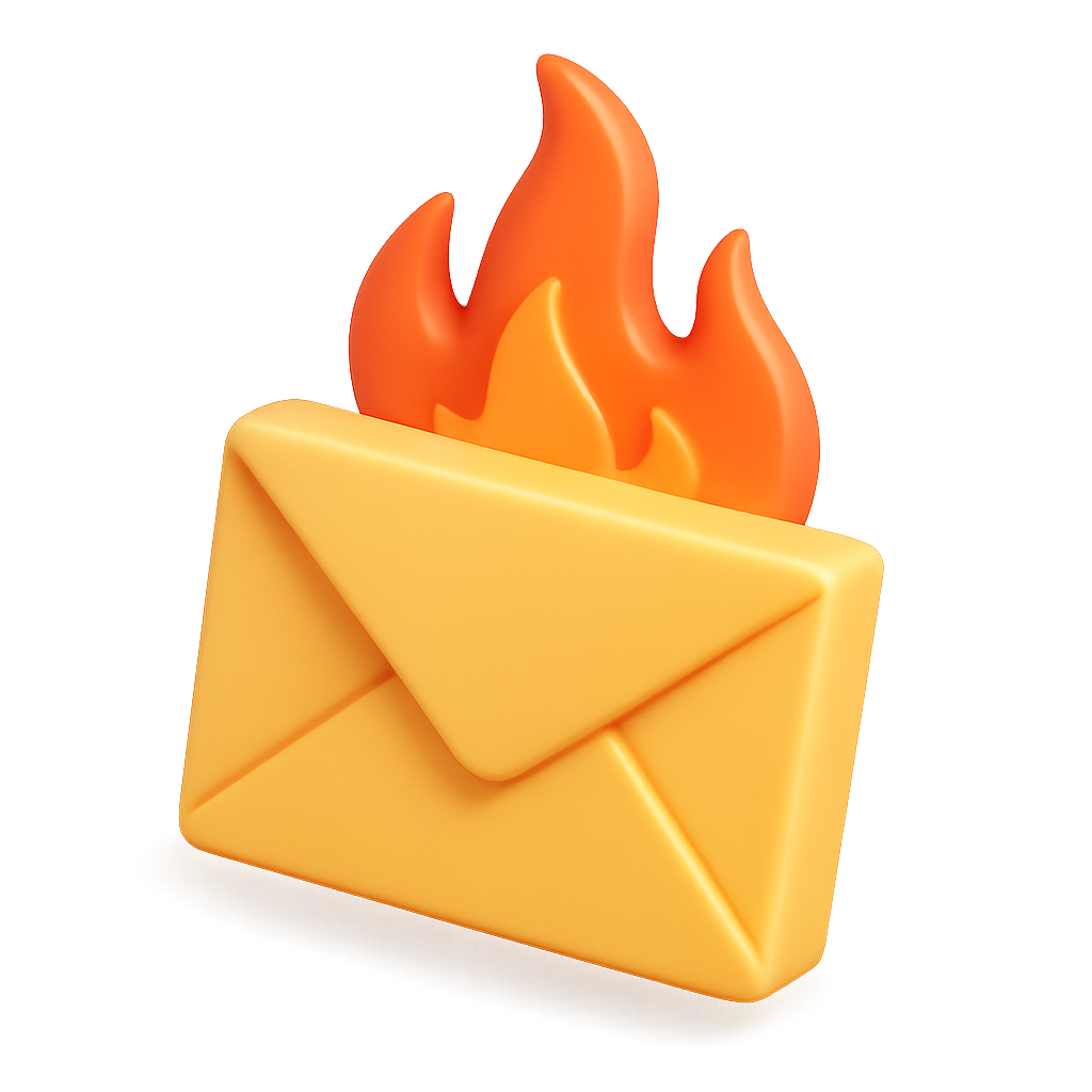 3D Fiery Envelope Icon with Flames