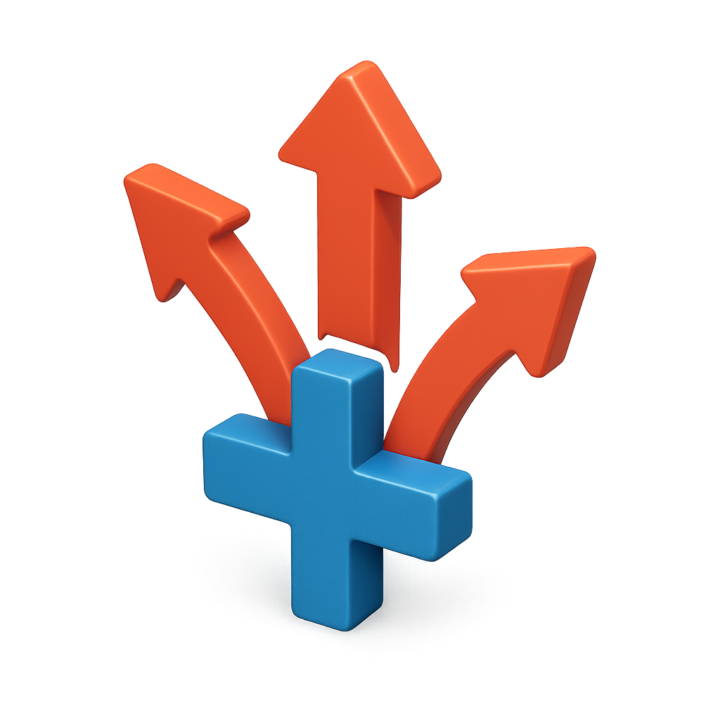 /Collection: /by davooda/Type: PNG/A visually striking 3D icon featuring arrows pointing in multiple directions, with a central blue cube. The design showcases a transparent background and a volumetric feel.