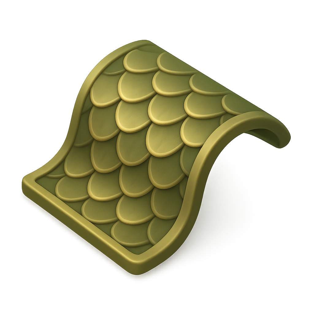 A detailed 3D icon depicting flexible dragon scales arranged in an overlapping pattern. The design features a three-quarter view with a smooth, volumetric finish on a transparent background.