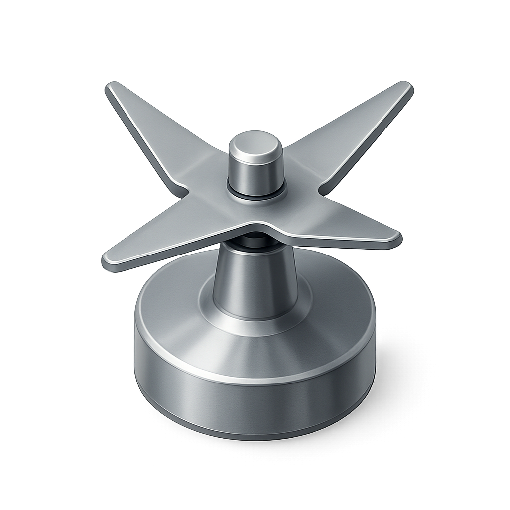 /Collection: /by davooda/Type: PNG/A sleek, 3D representation of blender mixing blades, designed with a transparent background. The blades are depicted in a three-quarter, isometric view, showcasing their metallic finish and volumetric detail.