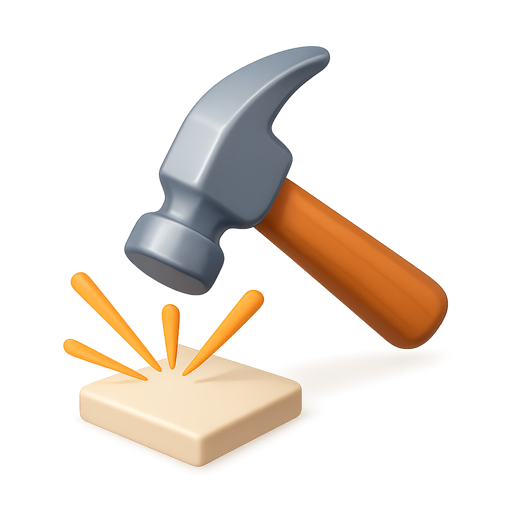 3D Hammer Impact Icon with Striking Effect