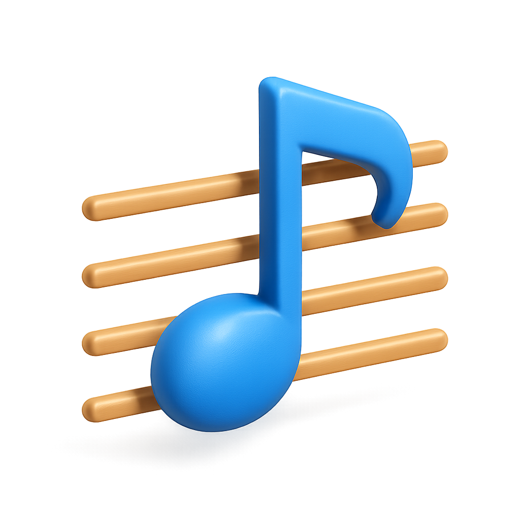Vibrant 3D Musical Notes and Sound Elements Icon