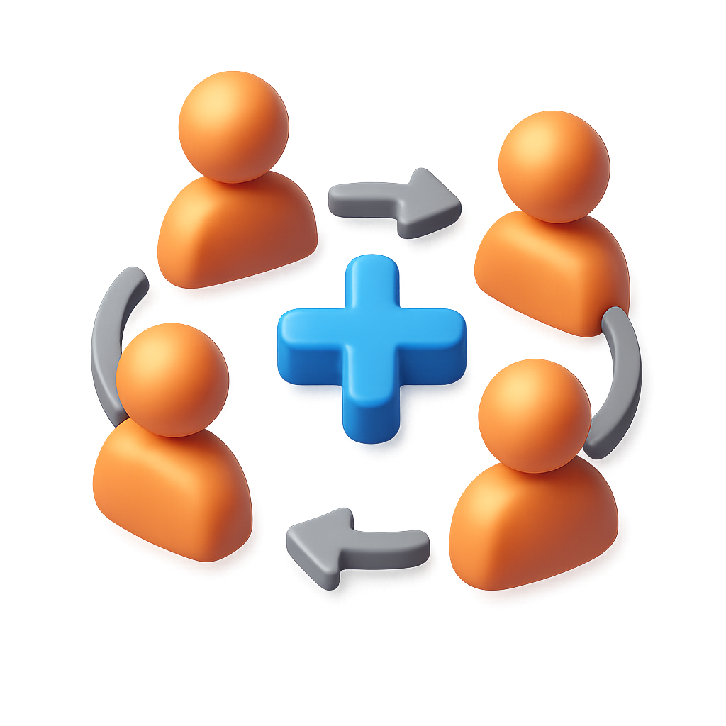 3D Volumetric Circle Icon with People and Plus Symbol