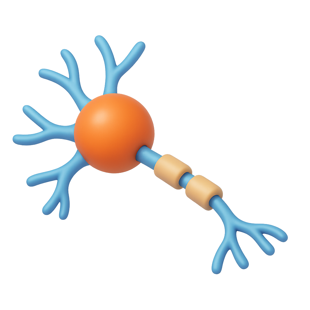 /Collection: /by davooda/Type: PNG/A stylized 3D representation of an artificial neuron, featuring a central orange sphere and branching blue extensions. The design offers a three-quarter view and a vibrant, volumetric feel.